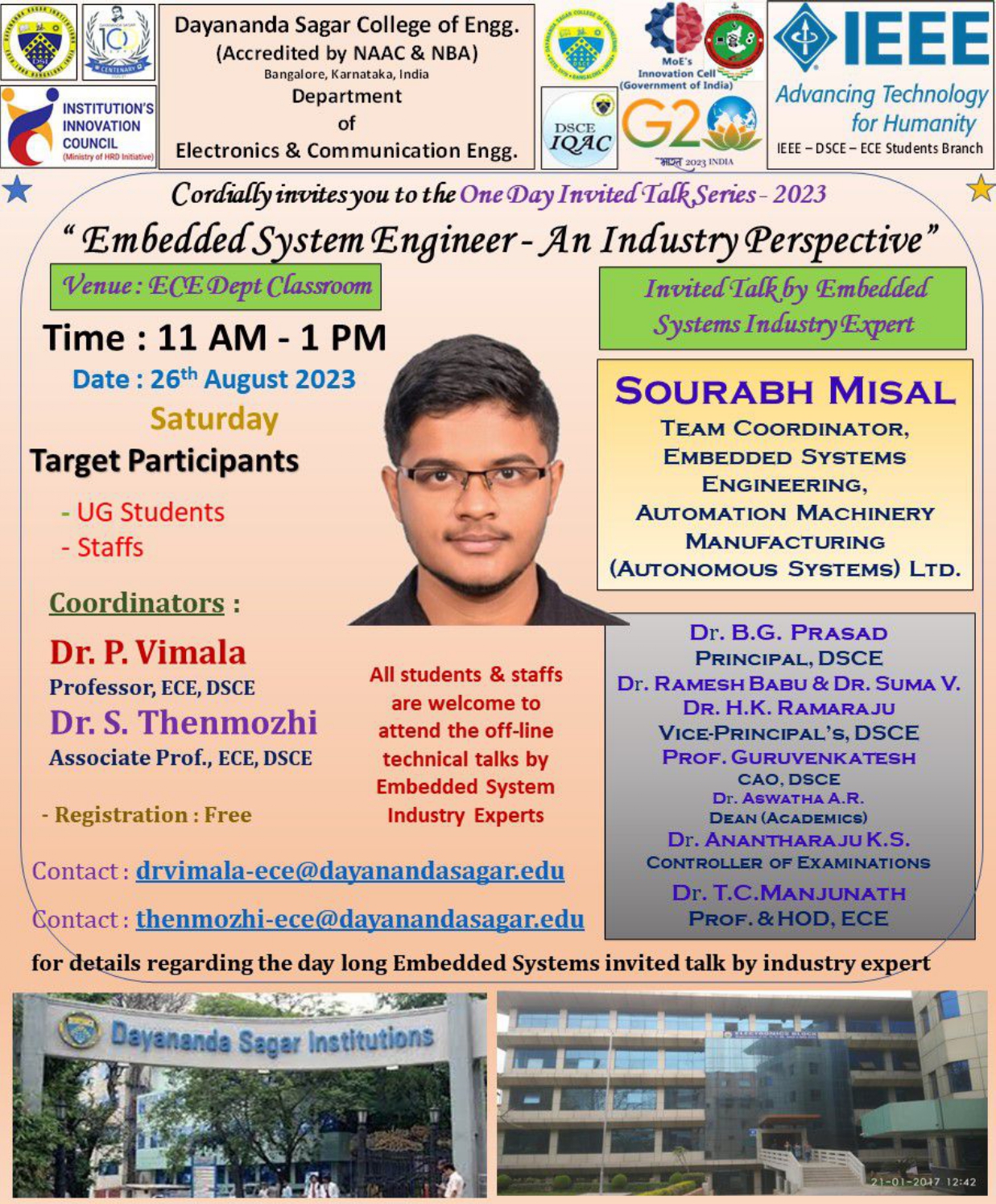 One Day Invited Talk Series 2023, Department of ECE, Dayananda Sagar College of Engineering (Bengaluru).